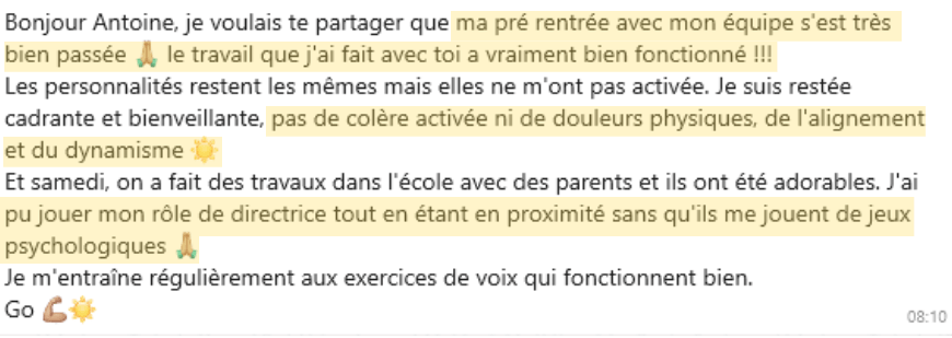 Applique ma méthode S.P.A.™ pour désactiver les schémas toxiques dès les 30 premiers jours et réduire la charge mentale liée aux conflits pro/perso. (80 % des participants l'appliquant voient une baisse immédiate de tensions dans leur cabinet/entreprise et leur relation intime).